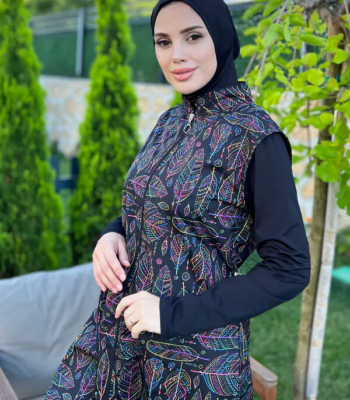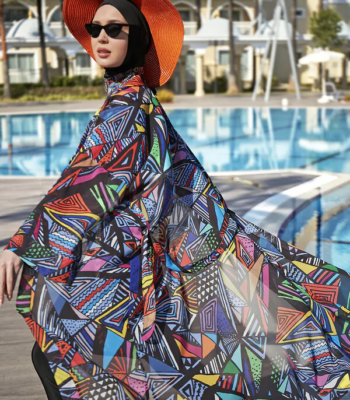 سارة بوركيني بطبعة تيتريس بقماش مطاطي