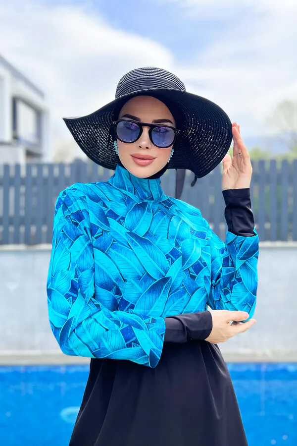 تألقي بإطلالة أنيقة ومريحة مع بوركيني أمينة المصنوع خصيصاً ليناسب احتياجاتك الصيفية. يتألف الطقم من أربع قطع: تونيك بستايل فضفاض، ليجن مريح، بُسْتييه مرن، وبونيه أنيق لتغطية الشعر.